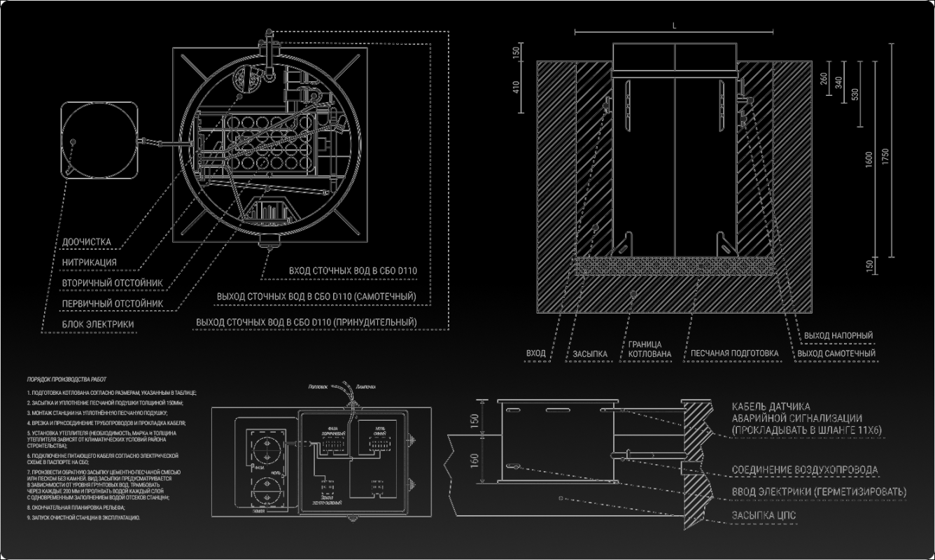 Диаметр подводящей трубы — 110 мм.